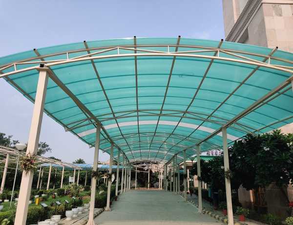 Polycarbonate Roofing brightens spaces while blocking UV rays, rain, and noise, perfect for patios, skylights, and semi-open areas